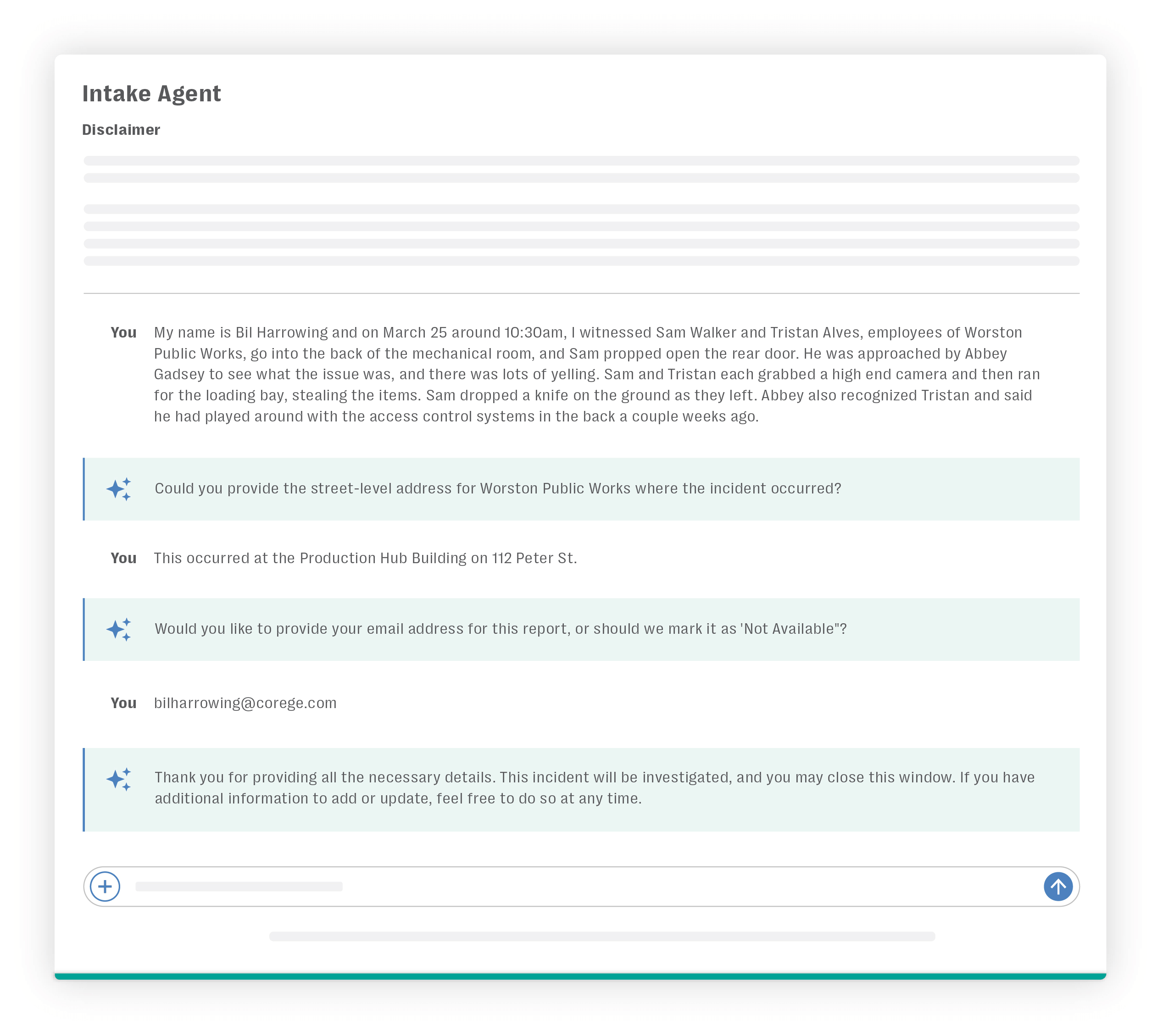 - Guided intake agent: Resolver’s conversational AI asks intelligent follow-up questions to capture details that matter – improving report quality at the source.