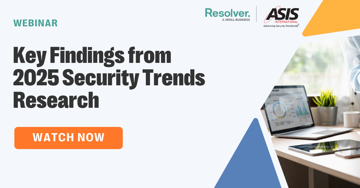 Watch the webinar, “Understanding the evolving role of security: Key findings from 2025 Security Trends Research,” hosted by ASIS, to break down key findings from the research. Learn from Artem Sherman, Division Head, Security and Investigations at Resolver, and William Tenney, CEO of ASIS International as they discuss how security teams are responding to new threats, the growing role of AI, and what leaders are doing to prepare for the future.