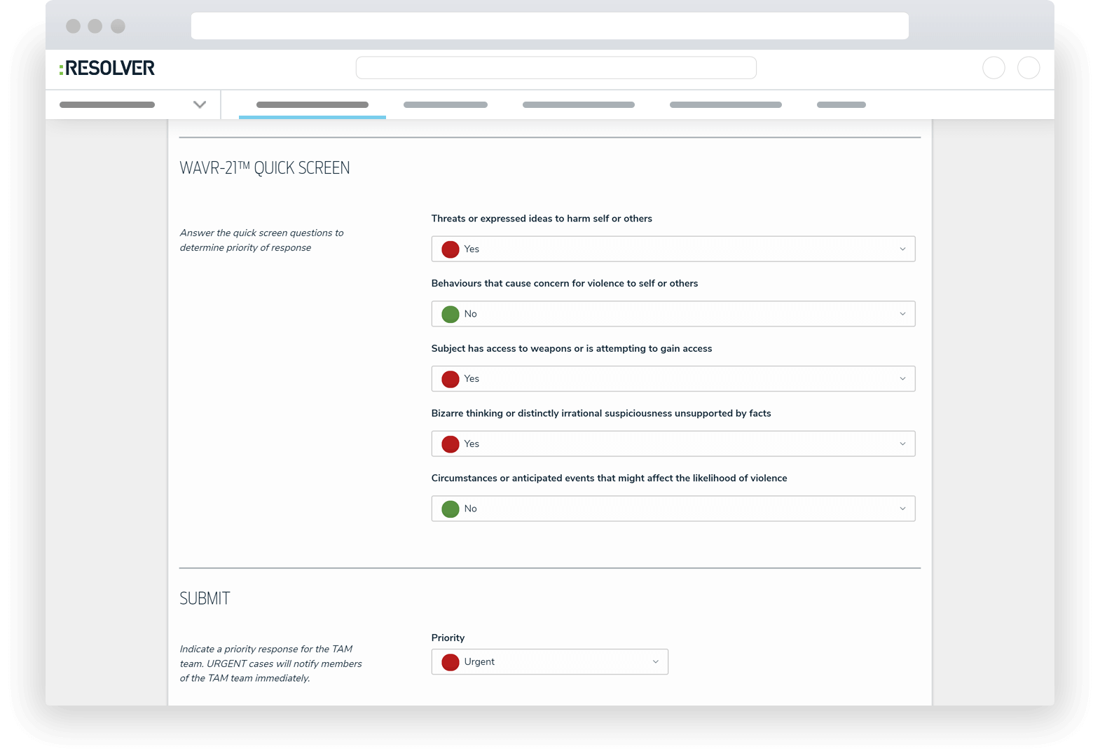 The ‘WAVR’ is quickly emerging as the most widely used threat assessment instrument within workplace and campus contexts. Adapting the solid foundation of the WAVR-21™ V3 content to Resolver’s modern cloud technology, the WAVR-21™ Violence Threat Assessment app delivers a significantly improved violence risk assessment and team collaboration experience. The full WAVR-21™ V3 content is contained within the app– including the revised Intake and Documentation Questionnaire, the updated assessment Worksheet and Grid, the comprehensive manual, and an eUser’s Guide.