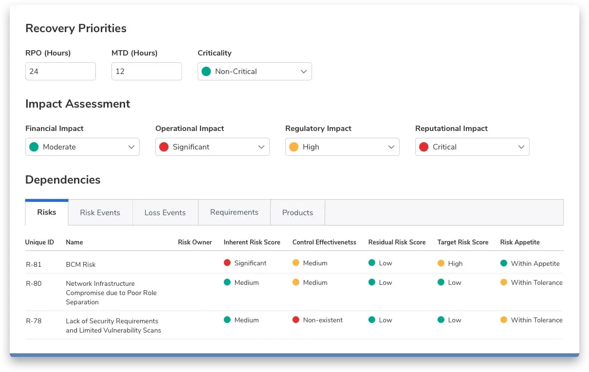 - Deeper insights: Understand the full impact by linking BIAs and plans to risks, controls, and obligations